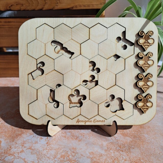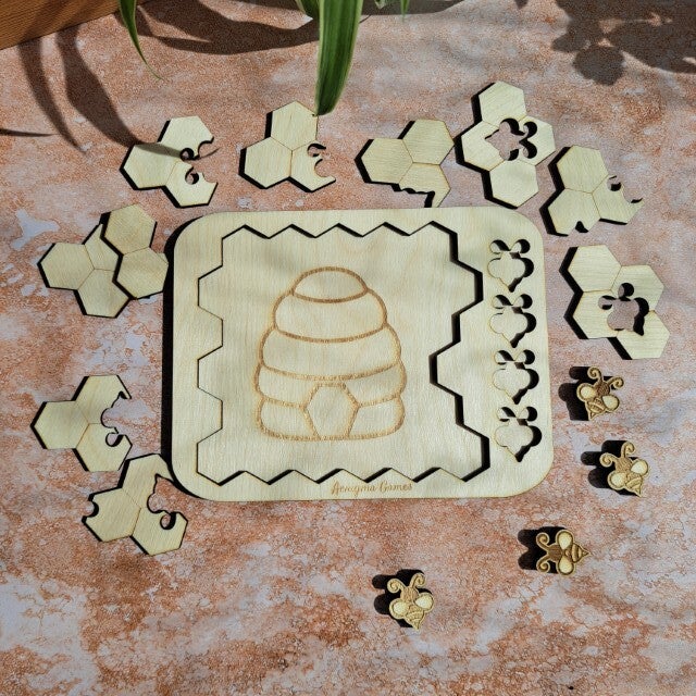 À vous de manipuler les 10 pièces pour créer un agencement parfait et offrir à vos abeilles un doux refuge.