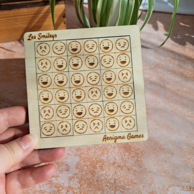 - Contenu : 9 pièces carrées gravées, chacune portant 4 smileys